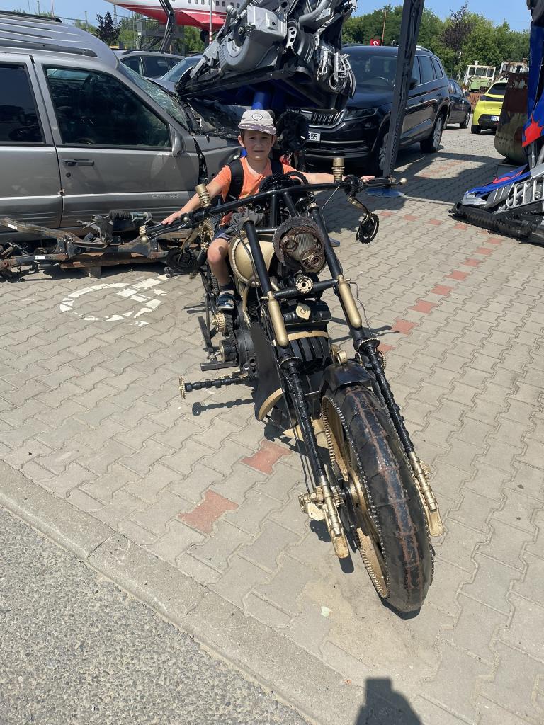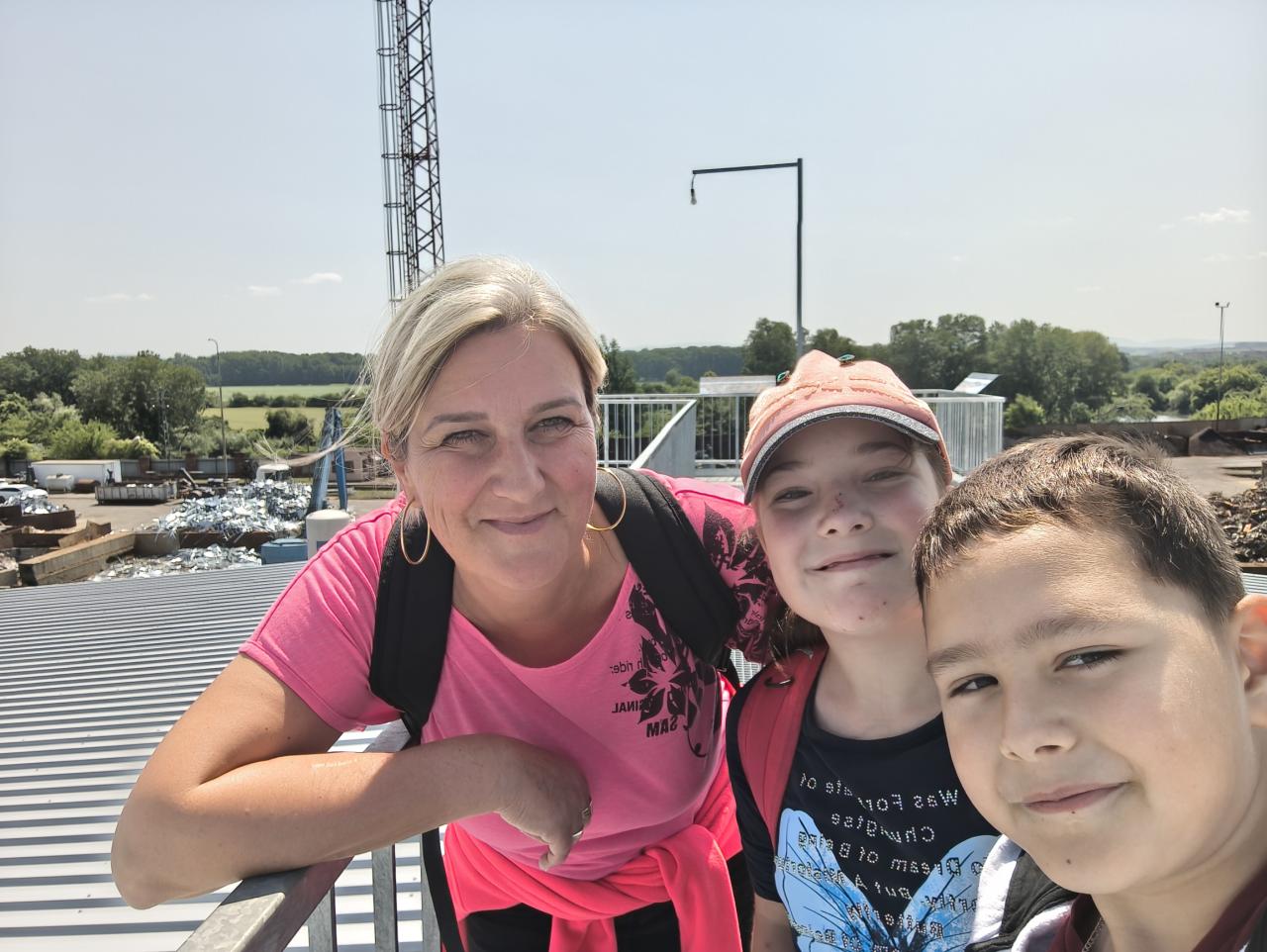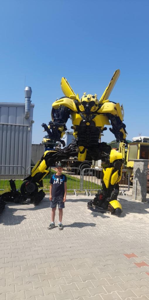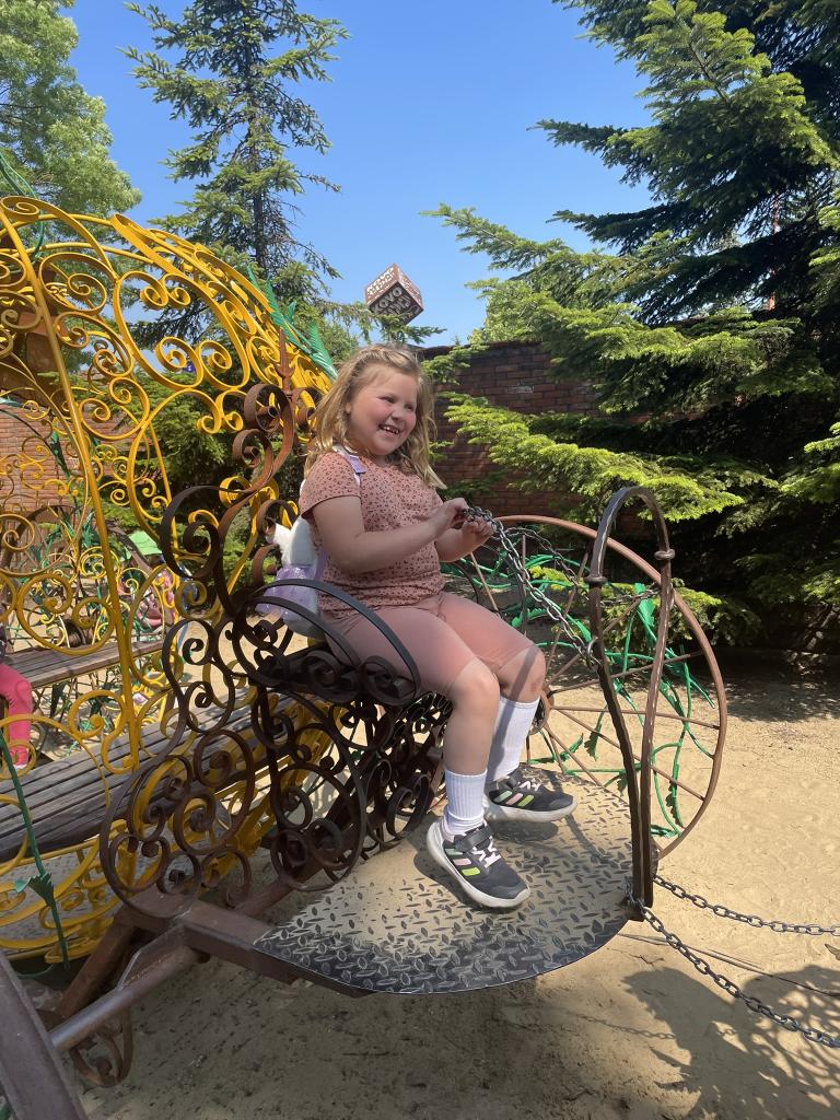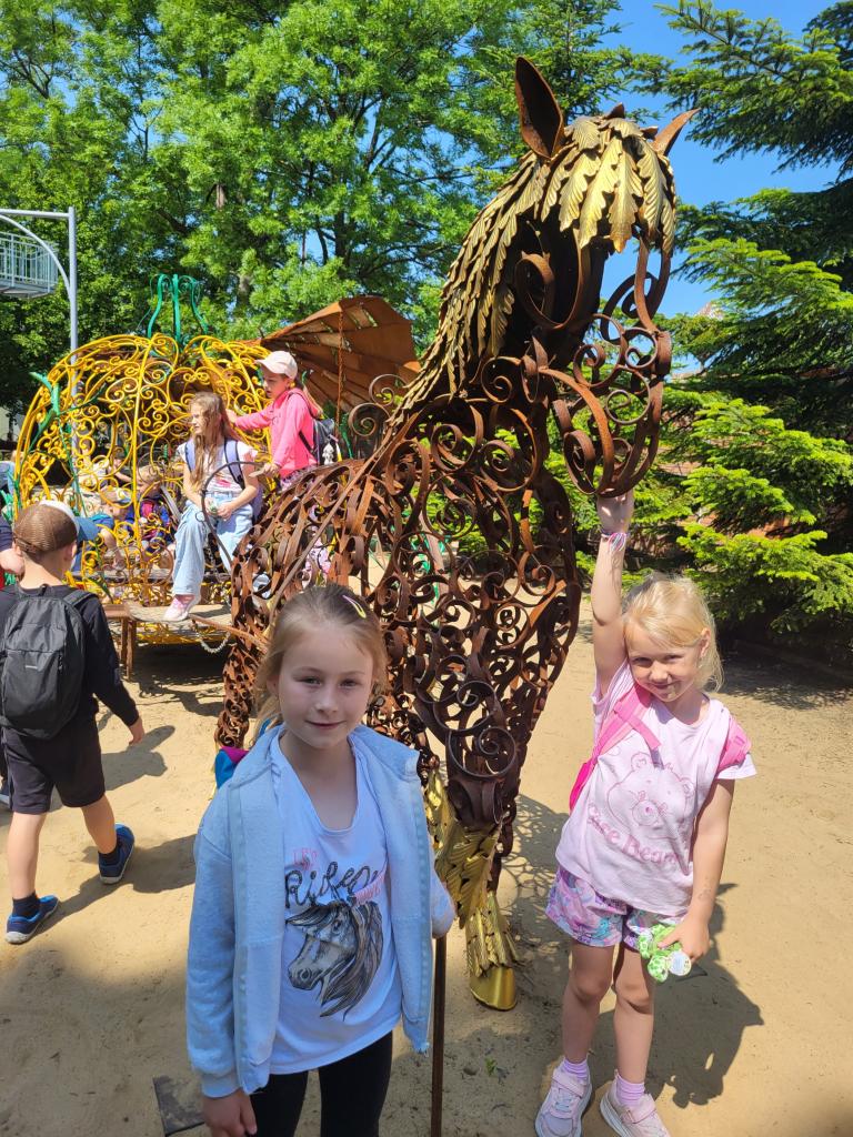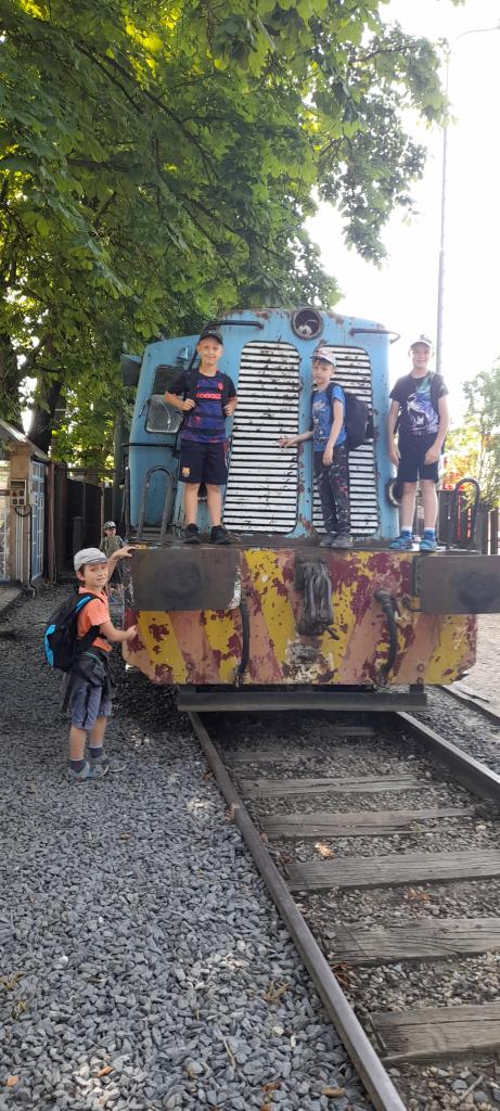 V KOVOZOO nás pak čekala spousta neobyčejných zvířat, všichni tito tvorové byli vyrobeni z kovového odpadu. Děti tak mohly obdivovat slony, žirafy, medvědy a třeba i stádo kovových prasat, jaké by doma v chlívku maminky ani babičky určitě nechtěly. Paní učitelky i asistentky si poseděly na lavičce nebo houpačce pod kovovou vrbou, která měla místo lístků stovky nebo i tisíce zámků, zatímco děti se vydováděly v „Gumolandu“, na pyramidách poskládaných z ojetých pneumatik. Kromě zvířat jsme okukovali i staré hasičské a zemědělské stroje, kovový kočár nebo obrovskou židli, na kterou se namačkaly děti z celé třídy. Vyhlídkové lávky nám umožnily krásný pohled na celý areál – no řekněte, kolikrát v životě se vám poštěstí mít pod sebou stáda zvířat, i když jen kovových?