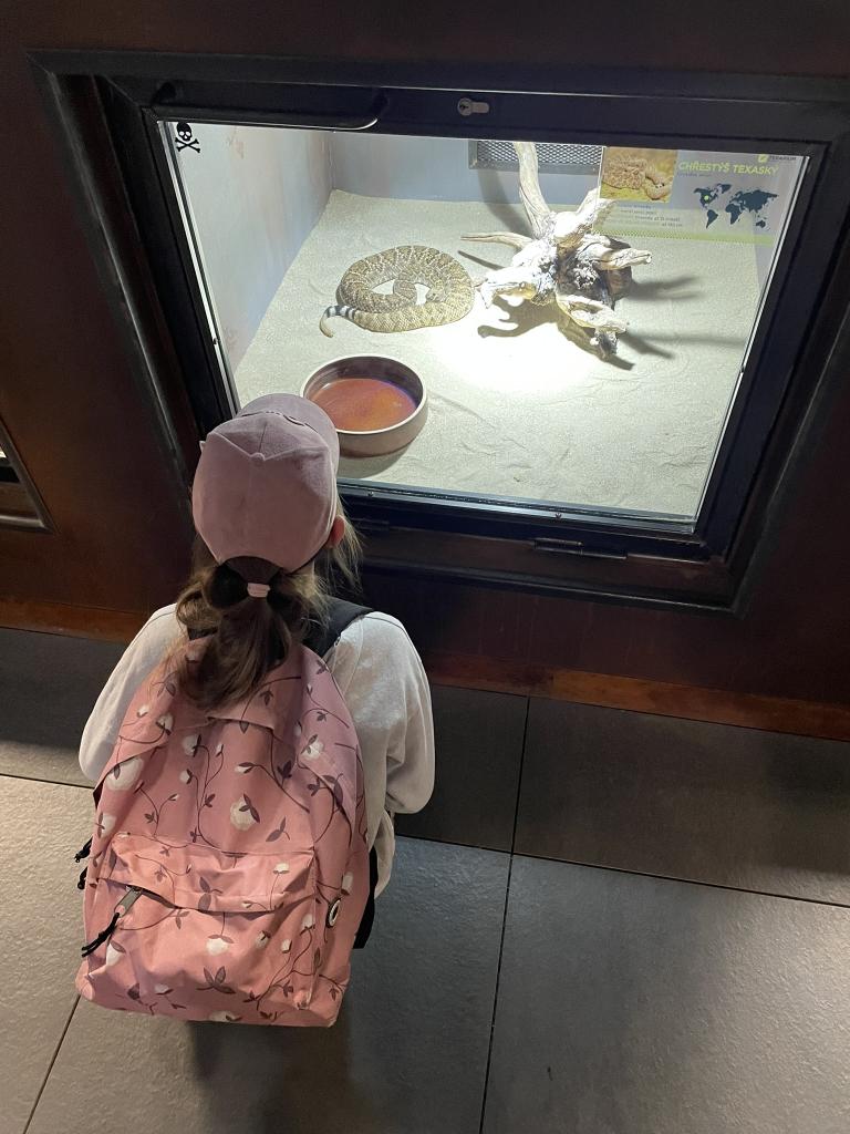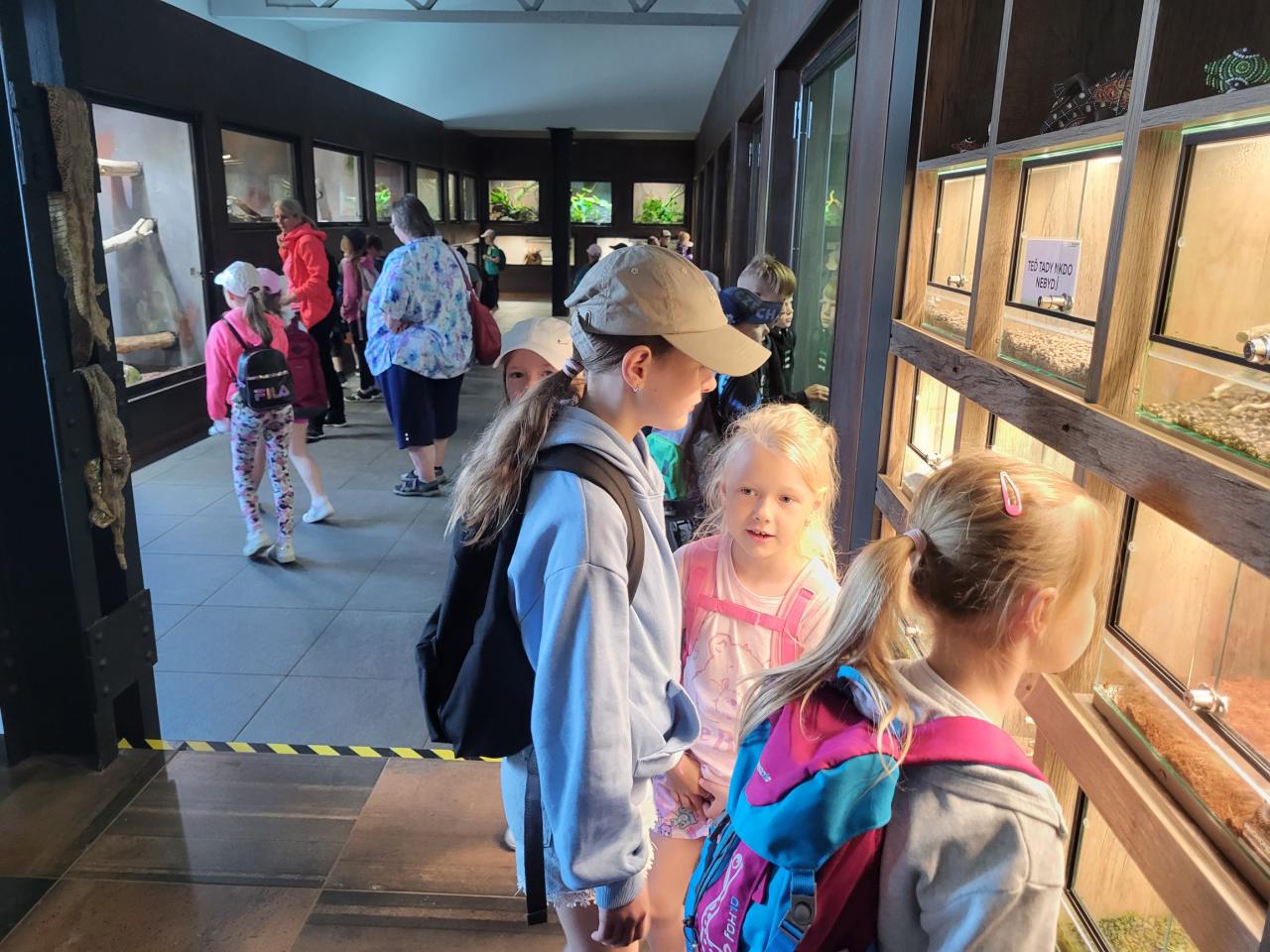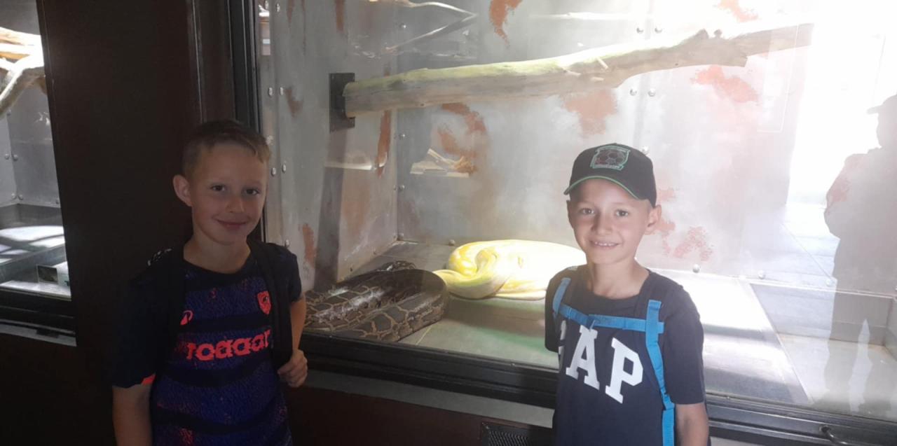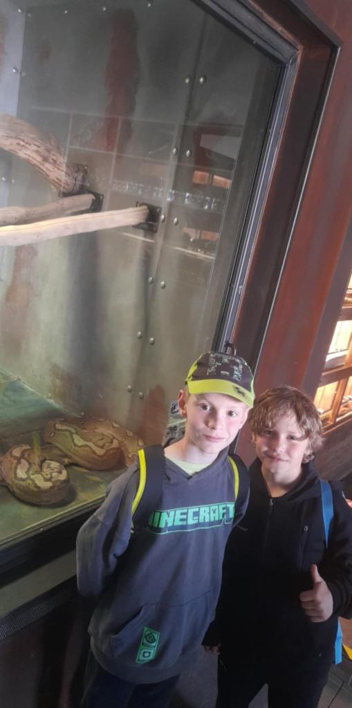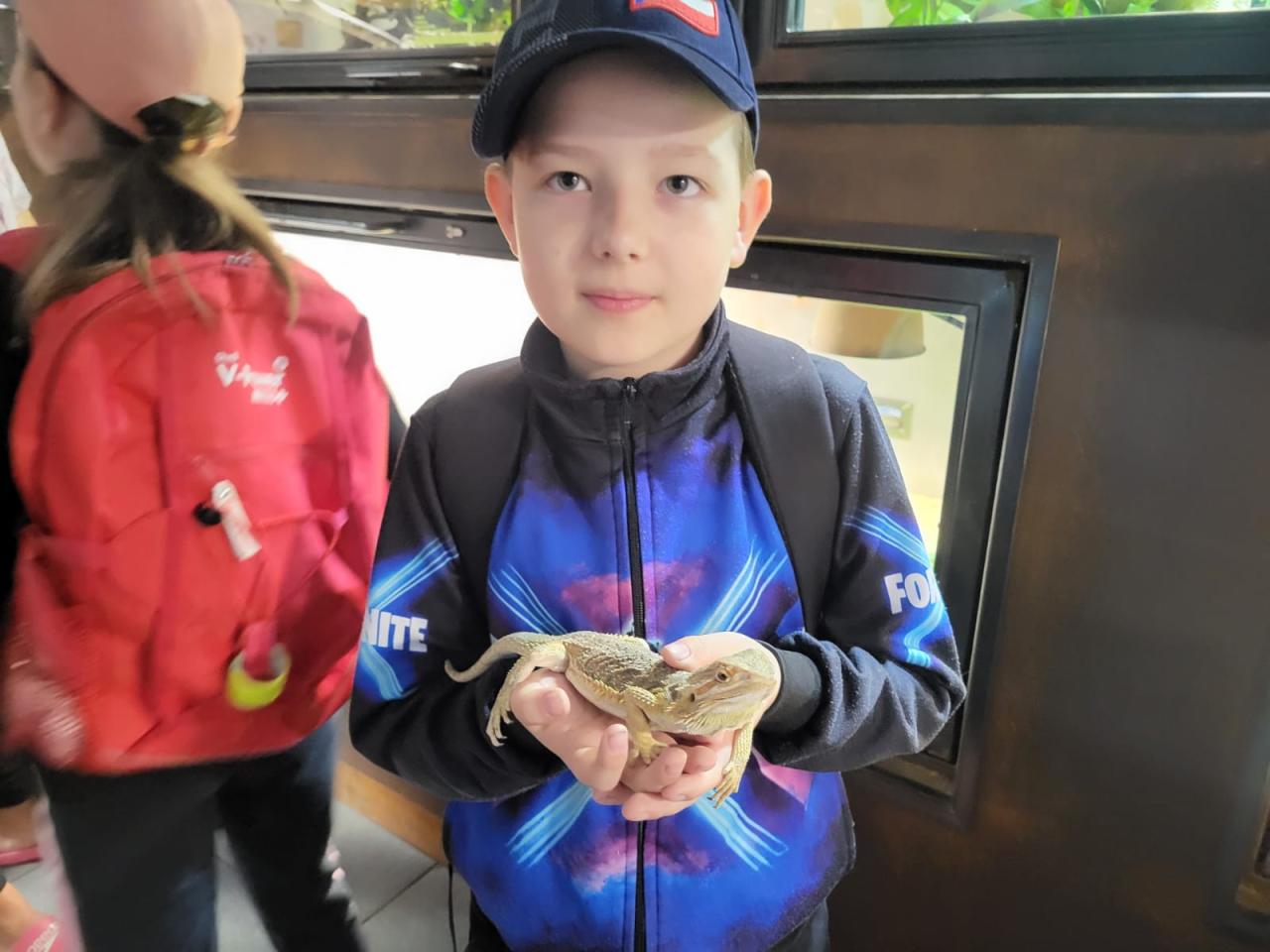 Po příjezdu k areálu jsme se rozdělili na dvě skupiny – jedna zamířila nejprve do terária, druhá do samotného areálu KOVOZOO. A co že se dělo v teráriu? Pavouci, hadi, žáby, ještěrky a želvy, prostě všechno, co by dětem pořídil domů jako domácího mazlíčka málokterý rodič. Největší úspěch sklidil plazící se had, ukrytý pavouk a agama, kterou si děti mohly nejen prohlédnout, ale i pohladit. Někteří žáci už plánovali, jestli by ji nemohli mít doma místo křečka nebo rybiček.
