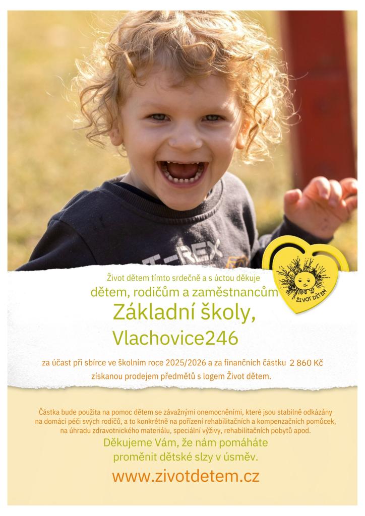 I naše škola se zapojila do sbírky Život dětem, která podporuje těžce nemocné děti.
