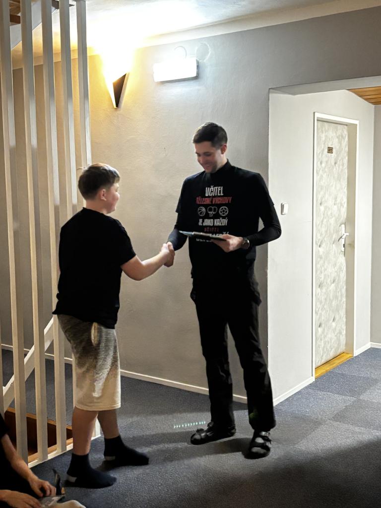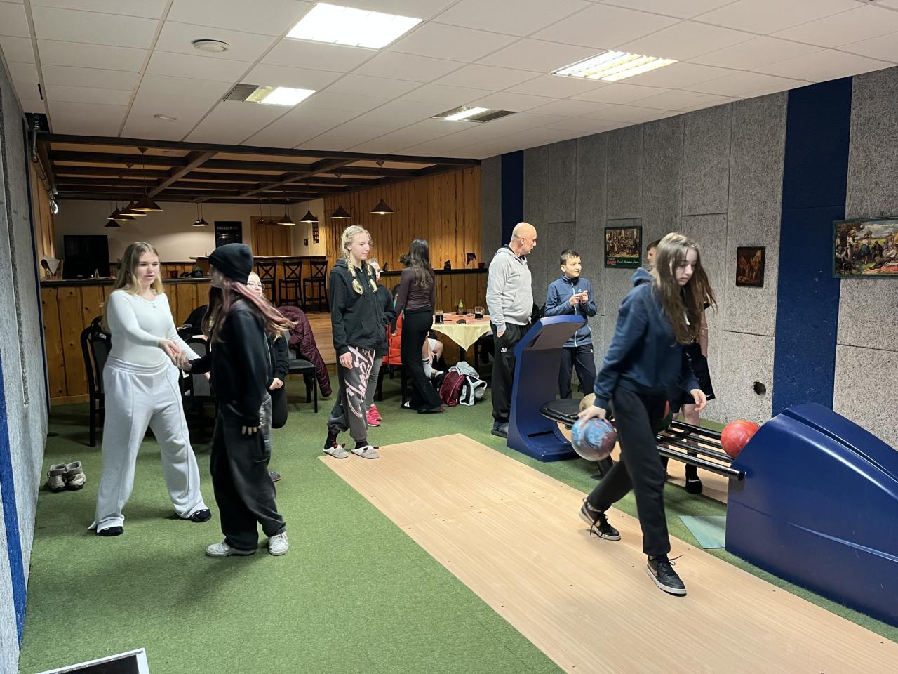 Ve středu dopoledne jsme opět vyrazili na svah a odpoledne jsme se vydali na přibližně čtyřkilometrovou procházku k rozhledně Maruška. Po návratu si žáci užili společné chvíle na bowlingu, kde nechyběla soutěživost, dobrá nálada ani malé občerstvení. Večerní program byl tentokrát v režii samotných žáků. Vybraní žáci si pro nás připravili velmi zajímavý a zábavný kvíz, který se setkal s velkým ohlasem.