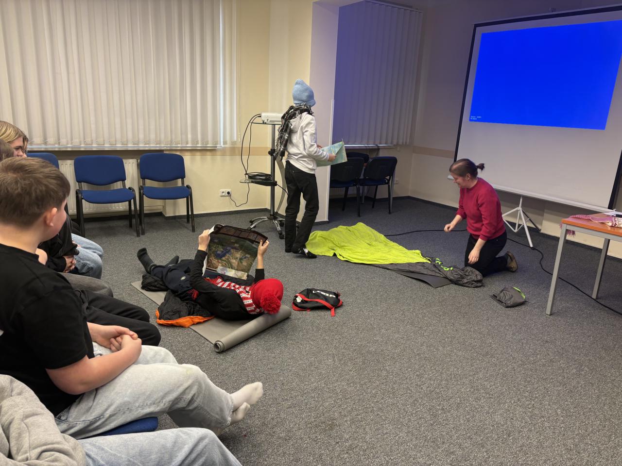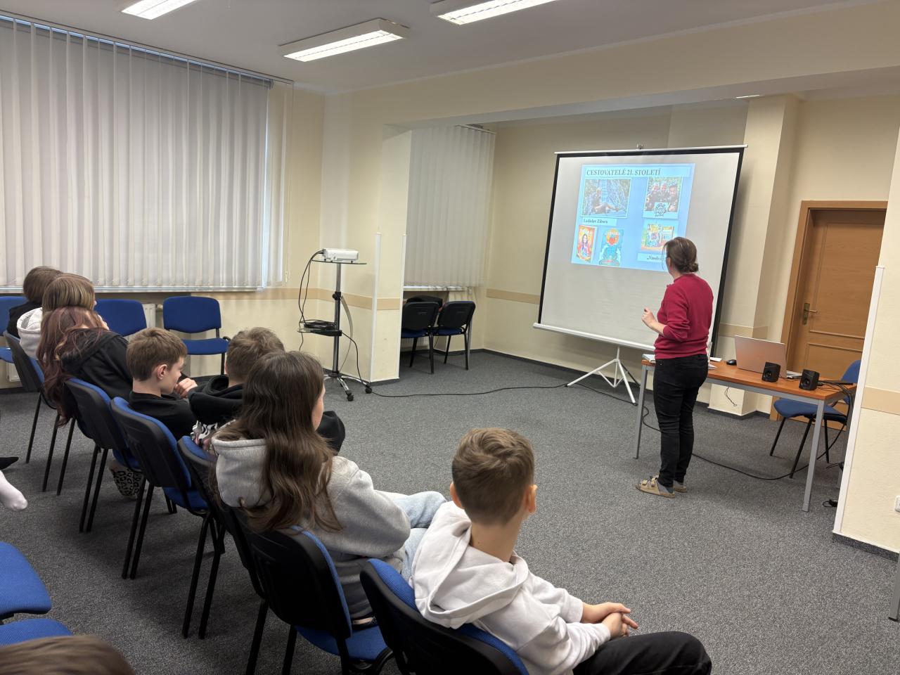 Kromě průřezu cestopisnou historií na žáky čekal zajímavý kvíz nebo soutěž o to, kdo se co nejrychleji zvládne dostat do spacáku. Žáci si tedy kromě načerpání nových informací užili i chvíle legrace. Paní knihovnici děkujeme za zajímavý program a budeme se těšit na další shledání.